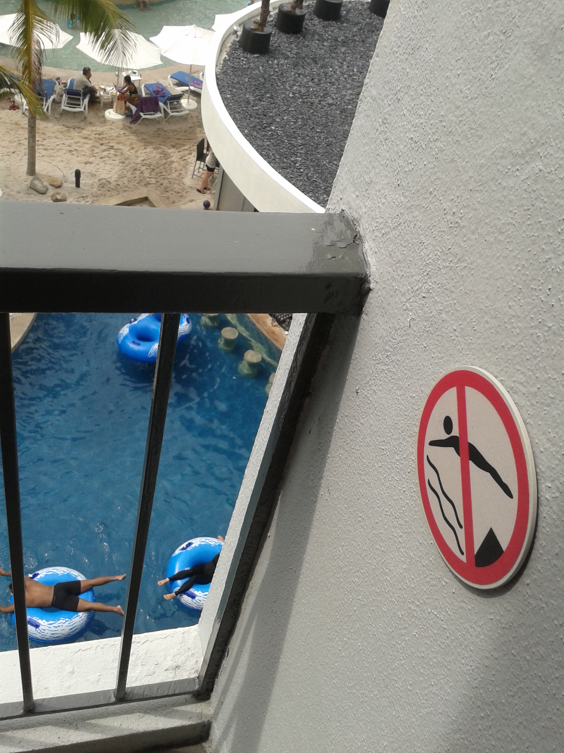 I’m really glad they put this ‘no diving’ sign on our balcony. I was on the top of the railing ready to do a belly-flop when I noticed it.