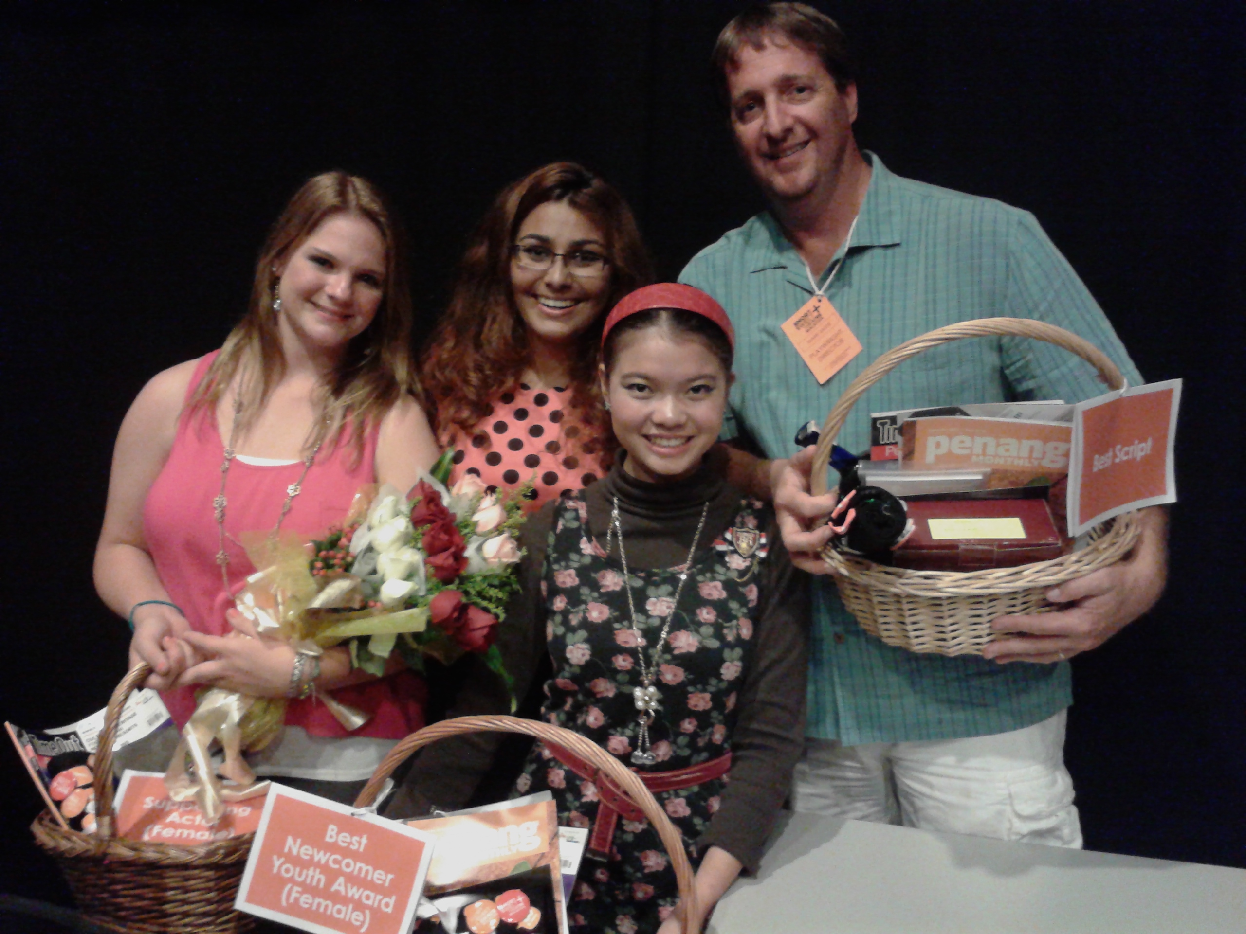 four night festival, guest judges from the performing arts industry came to choose the best in 10 different categories. The winners received a nice basket full of goodies including a wonderful crystal trophy and a large cash prize. The script that I submitted