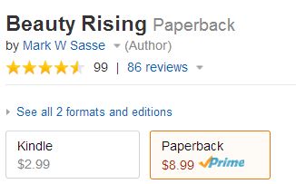 Ninety-nine. OK. Time to do some investigating. Amazon says that they are beta testing user ratings. Available now only on some products. What’s interesting in my case is that the ratings show up for my novels only on the paperback page – not on the Kindle page. So Beauty Rising has 99 ratings, and if I click on the stars it does indeed list the break-down for the 99 and not just the 86 reviews.