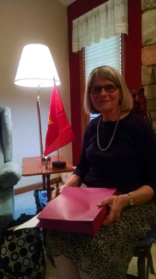“Most everyone in the room raised their hands when she asked who all read it, so I know that many of them bought it. The response seemed to be very positive, of course at the mention of Vietnam, many older people here have some feeling or relationship to it because of the era that they grew up in with the war. One lady had a brother who was a green beret, another one lost her brother from the effects of agent orange. Another lady had lost one of her students to the war. The theme of the club this year was ’embracing diversity’, so the Banyan Tree fit it just perfect for that. They discussed tradition and culture and the role it played in the book, etc. It would have been so nice if you were there, they would have loved it, but they seemed pleased to have me, they told me to come back. I brought a big picture that you have of the Maritime University, and they had it sitting up front. Also, I took some straw mats, a paper fan, some Vietnamese books, a hat, that one of the ladies was wearing haha, and my photo album from Vietnam. I just left it there so they could all look through the photos. The lady that was in charge of music, passed around a sheet of paper with the words to ‘where have all the flowers gone?”, all 5 verses we had to sing…. She chose it because it was used as a protest during the war era.”