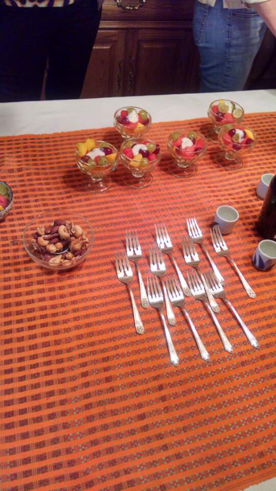 They had only fruit for dessert, since that’s what you said they eat. I had told her that the yogurt there was the best I ever had, so she put a little spoonful of yogurt in each fruit cup. They really care about the details. Over all, I would say that it was a great success. At least you got some new readers, some of them will probably be buying your new book.”