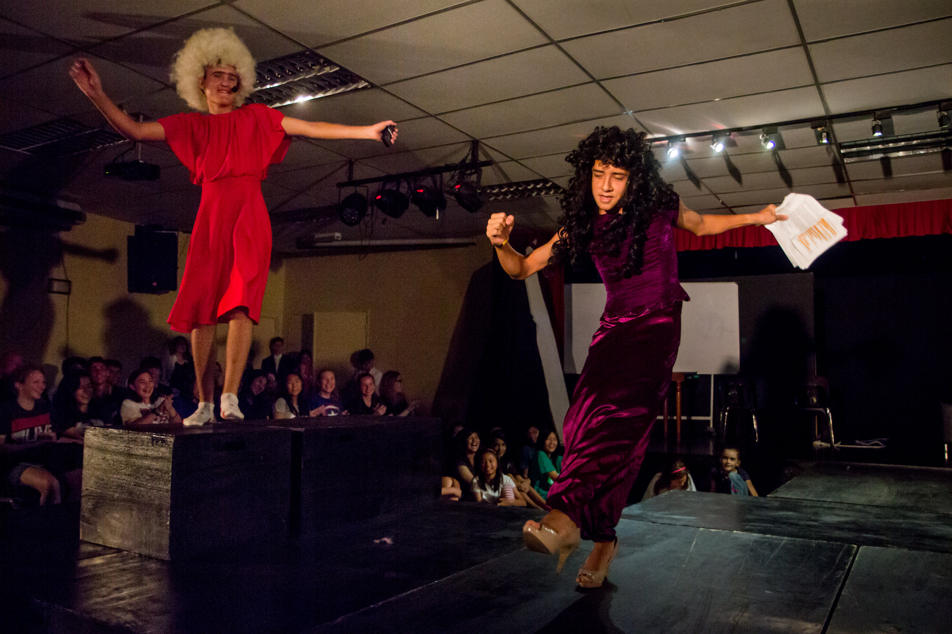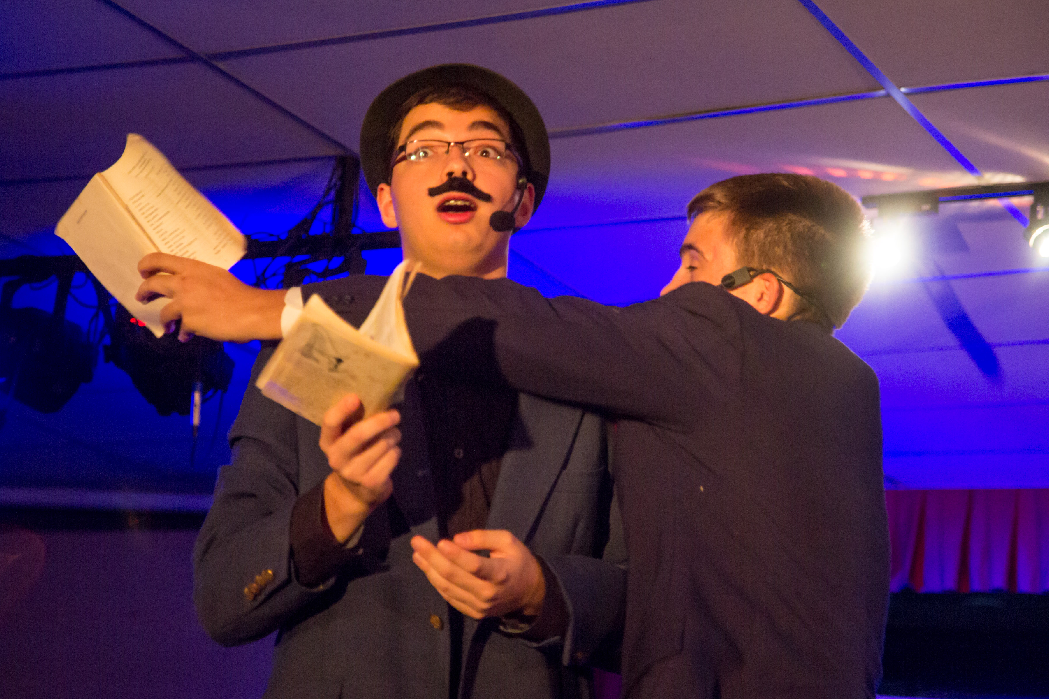 Tuesday evening, we had our annual Readers’ Theatre – this year a re-incarnation of the Pink Panther. We had the audience rolling in laughter. A Readers’ Theatre is just like any other show except the actors read the lines instead of memorizing them. It leads to very amusing situations when Jacques Clouseau says things like, “Wait, I can’t find my line” or when Javis, dancing the tango with Clouseau, can’t read the script because Clouseau is pushing his arm up and down.