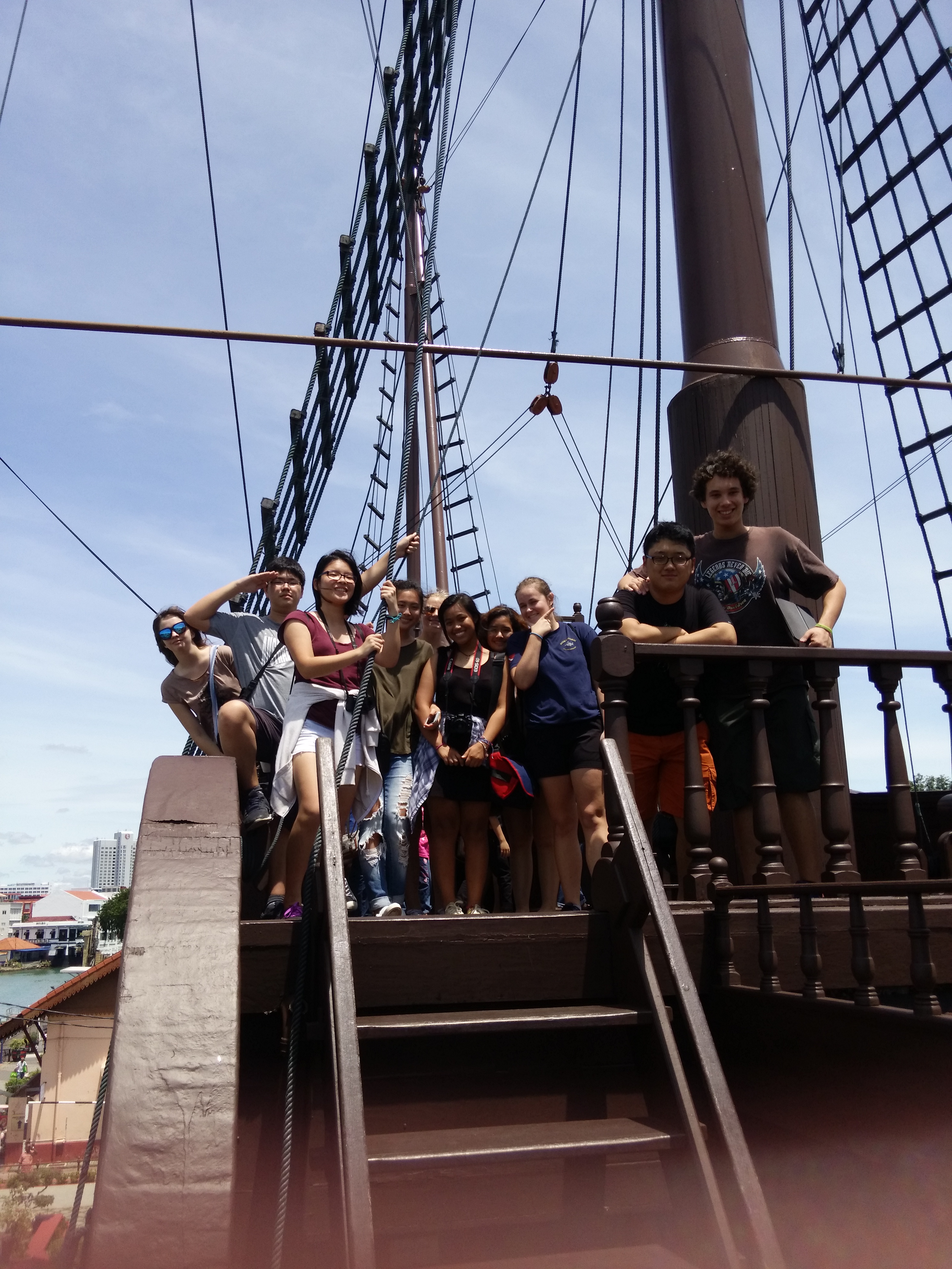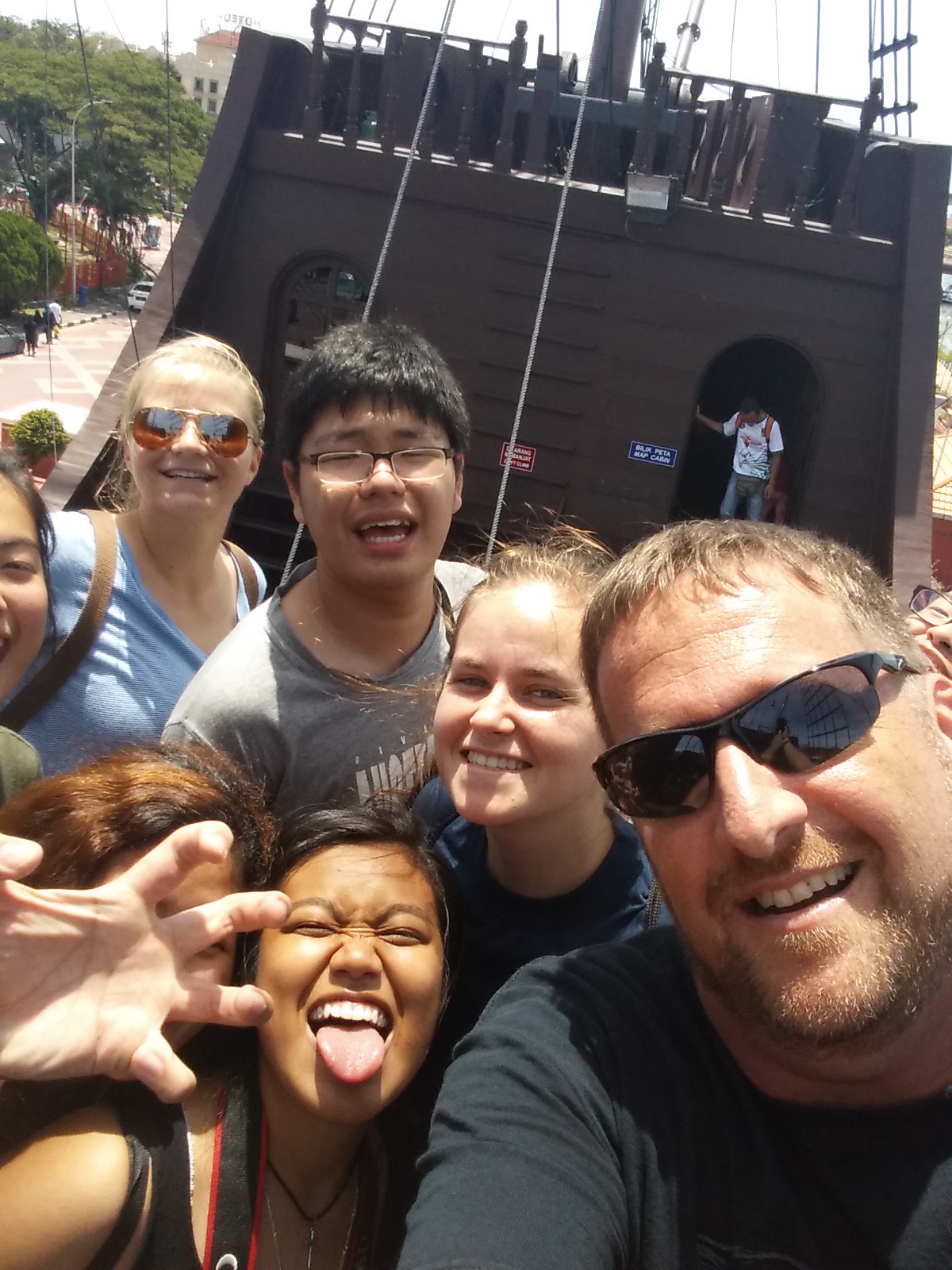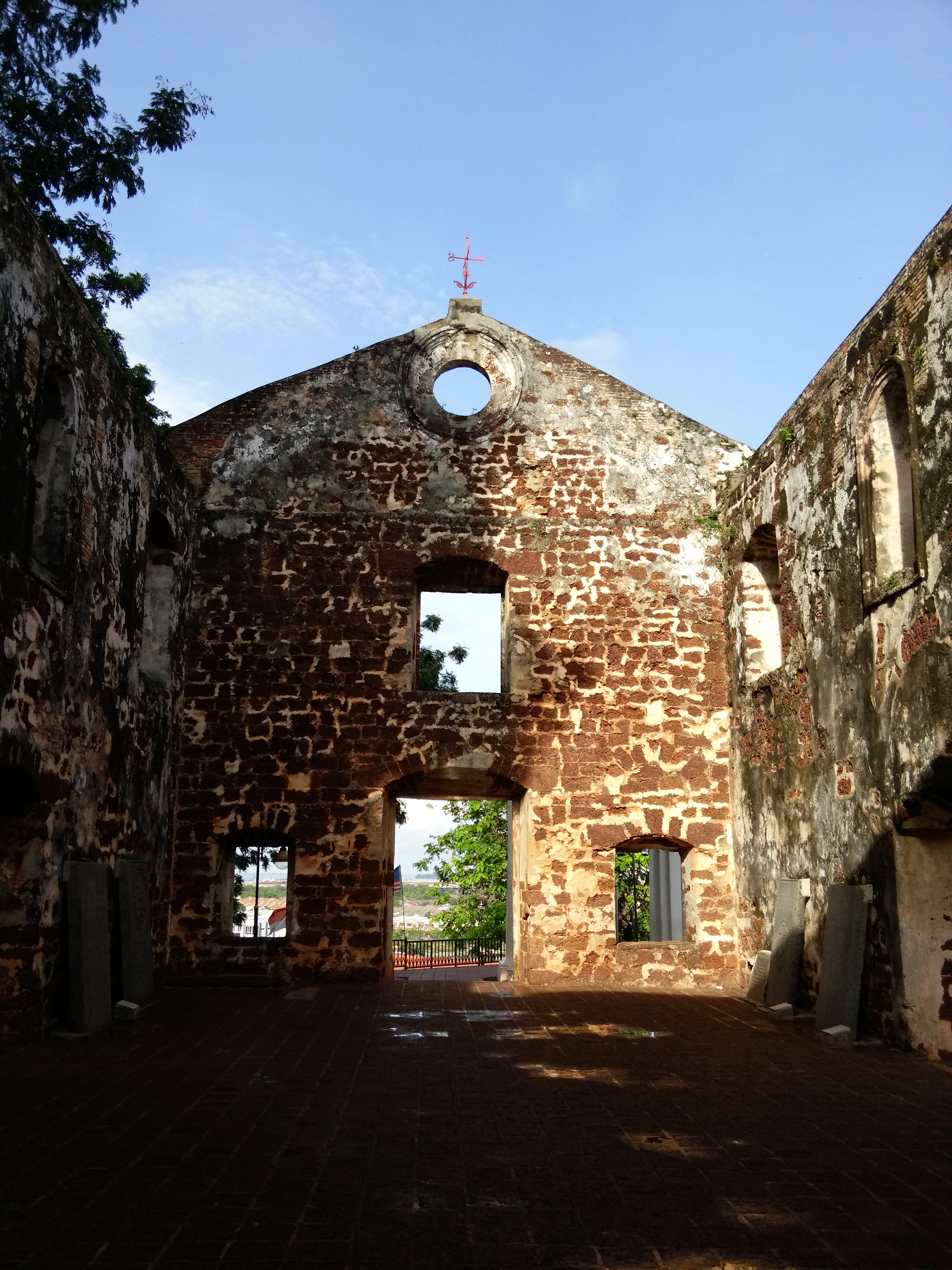 Malacca River. Great for night time walks or a river cruise.Dutch built church in Dutch square. You can attend a service on Sunday morning.Here’s my crazy students touring the replica Portuguese ship.Up close.The tomb of famous Malay folk legend Hang Jebat.A typical Malacca building.From the rooftop of Hangout Hotel. Jonker Street in full mode.St. Paul’s church, built by the Portuguese in 1511. This is a statue of St. Francis Xavier, who was interred her for a time.Inside St. Paul’s.Malacca city from St. Paul’s hill. The lone standing gate of the old fort, Afamosa, is in the foreground.