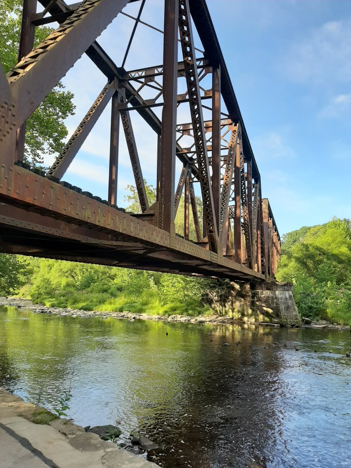 Here’s a modern-day railroad bridge over Oil Creek a few miles south of Titusville. (I snapped this one on my bike ride at the fantastic Oil Creek Bike Trail.)